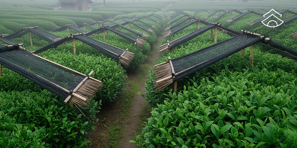 في القرن السابع عشر، طور المزارعون طريقة تغطية النباتات بأغطية القش لمدة 20-30 يومًا قبل الحصاد، مما يزيد من الكلوروفيل واللثيامين لتعزيز اللون الأخضر والنكهة الأومامي، هذه الابتكار ميز الماتشا اليابانية عن الشاي الصيني.